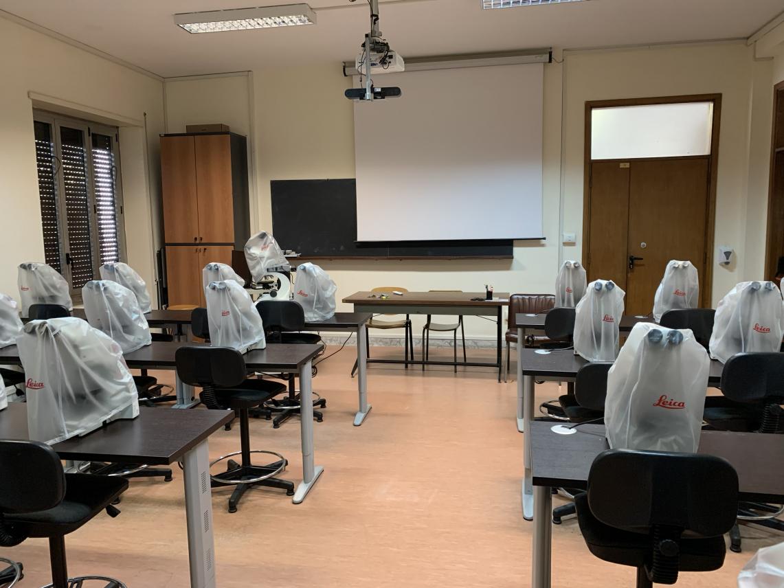 Il laboratorio didattico di ottica mineralogica viene utilizzato per esercitazioni pratiche per studenti di vari corsi di laurea. Il laboratorio è equipaggiato con 28 microscopi ottici Leica DM750P a disposizione degli studenti ed un microscopio Leica DM2700P come postazione docente. Il microscopio docente è connesso con una telecamera che permette, oltre alla proiezione delle immagini mediante un videoproiettore ad alta risoluzione Benq, lo scatto e l'archiviazione di immagini in un sistema di storage in remoto Zotac cui gli studenti possono accedere mediante smartphone, tablet o notebook.